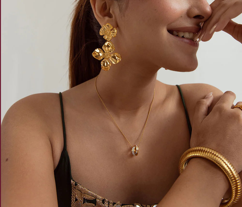 The brand's demi-fine jewellery is meticulously crafted, blending luxury aesthetics with everyday wearability to offer affordable elegance without compromise.